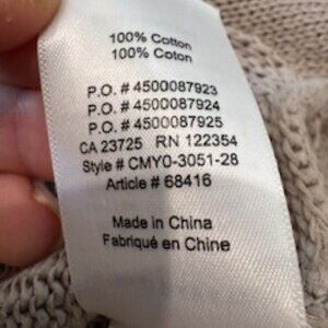 very classy and beautiful on- have had a hard time parting with this piece. 100% cotton, knitted.