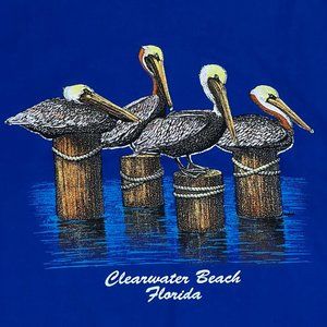 Clearwater Beach Florida Vintage Sunshine Apparel Blue Large T-Shirt