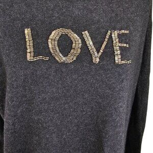 Clements Ribeiro POP Love Beaded Cashmere Wool Blend Dark Grey Sweater Sz XXXL