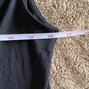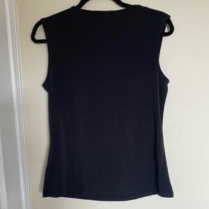 -Black sleeveless top with flattering draped neckline
