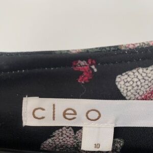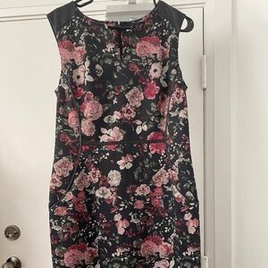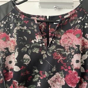 Cleo Dark Floral Sheath Dress with Faux Leather Shoulders – Size 10