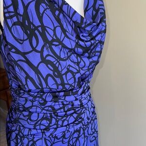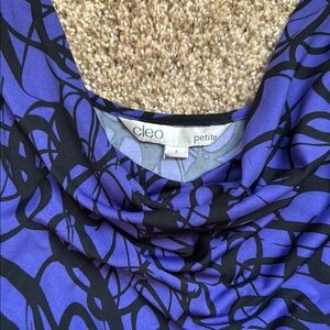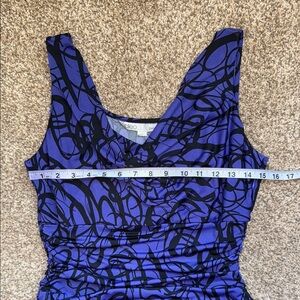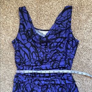 Cleo Dress Black Purple Midi V-Neck Sleeveless Tummy Control Ruched Women's Sz8P