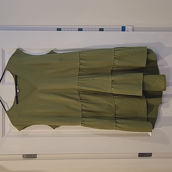 Cleo green sleeveless v neck mini or tunic high low hem ruffle tiered dress. size xl. excellent used condition no flaws.