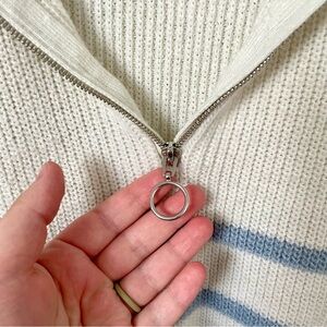 Cleo Half Zip Blue and White Coastal Stripe Knit Sweater Size Large