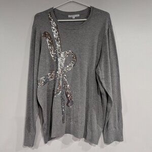Cleo Holiday Crew Neck Sweater with Sequined Bow Grey Silver Size XXL