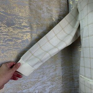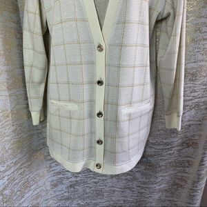 - Gorgeous ivory/gold shimmer knitted check pattern duster with matching blouse.it’s so glittery and eye catching