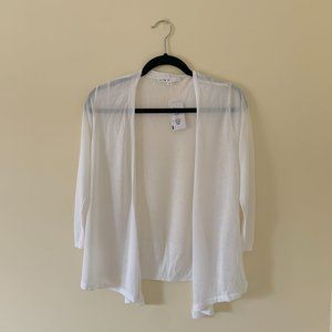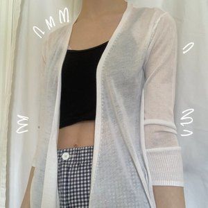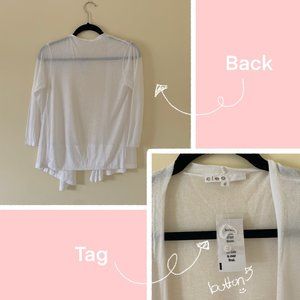 This pretty sheer cardigan would look so cute tied in the front! :) It's also adorable untied and perfect for layering either way! It comes with a tag and a spare button. It’s labelled as a size XS but could also fit a size S, just be warned the sleeves will be on the tighter side.