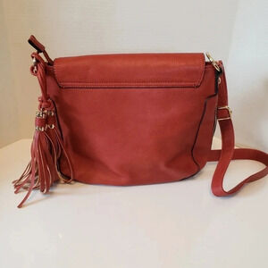 Cleo orange/brown fold-over tassel saddle bag/crossbody medium bag.