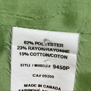 This classy, bright lime green, woven fabric blazer has faux flap pockets. Perfect for spring and summer! Single breasted, three buttons, fully lined. Petite Size 2. 62% Polyester 23% Rayon 15% Cotton, Dry Clean only. Good used condition. Please see photos for approximate measurements.