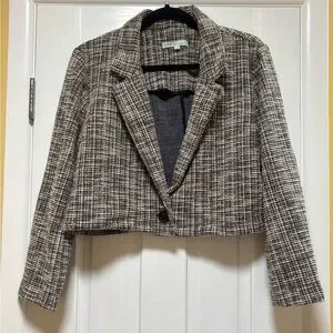 Cleo Petites Cropped Tweed Blazer - Textured Knit Jacket - Size Large Petite