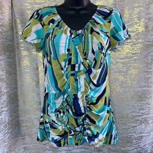 Cleo Petites Multicolour Stretch Ruched V-Neck Blouse Size XS