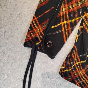 Cleo Petites Women's Black & Gold Plaid Blouse Long Cut Out Sleeves Size Large