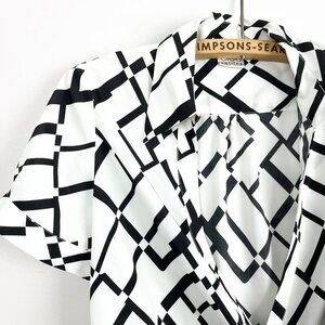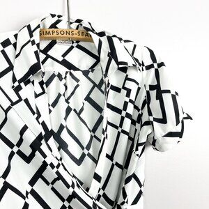 Cleo Petites XS Wrap Front Tie Short Sleeve Collared Blouse - Black & White