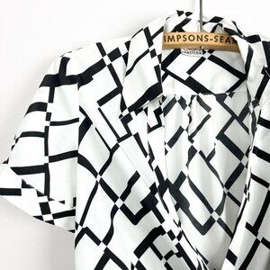 This Cleo Petites wrap blouse is effortlessly chic with a bold black and white geometric print. Featuring a flattering wrap front with a self-tie waist, this short-sleeve blouse offers a polished yet comfortable fit. The collared neckline adds a tailored touch, making it perfect for office wear or styling casually with denim.
