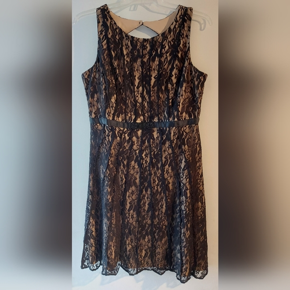 Cleo Petites dress size 16P. New with tags. Zipper entry at back that goes down 75% of the way (approx 8" past the waist band), button at top of keyhole. Pit to put measurement approx 20", waist at band approx 18" length approx 39.5".