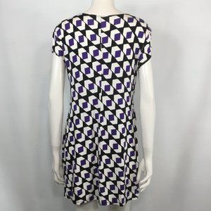 Scoop neck print tunic top has empire waist at front. If you are petite, this could be a mini dress! Very good condition.