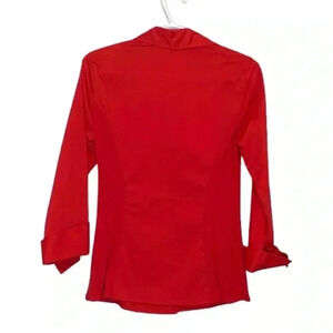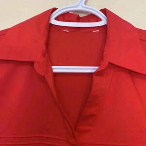 Cleo Red Button Down Shirt w Horizontal Pleats, Soft Side Panels 3/4 sleeves