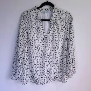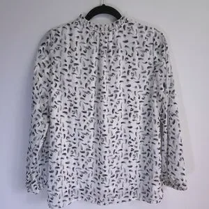 Enhance your blouse collection with our relaxed fit chiffon blouse for spring and summer. It features a V-neck to show off your favorite necklace and feminine ruffle detail around the collar. The fine, metallic striping adds a bit of shimmer to your ensemble.