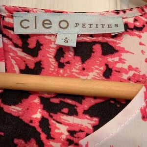 Pretty shades of pink with black and white abstract pattern. Fabric is lightweight, flowy and easy wear. Sleeveless blouse. Snap clasp in back and folded seam for interest in back. Size Large Petite. In immaculate condition.