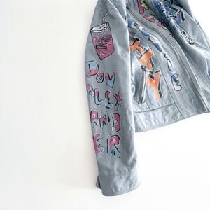 Cleo Womens Riverdale Faux Leather Jacket One-Of-A-Kind Full Zip All Over Print Gray Large