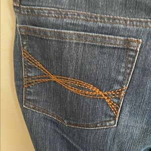 These blue ankle-cropped jeans offer a clean and classic look with their medium-dark indigo wash. The straight cut and medium-weight denim ensure comfort and versatility for any casual occasion.