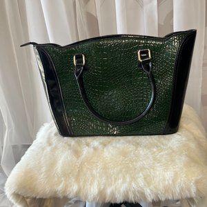 Sleek, stylish and spacious, the Cleo croc pattern Tote bag is crafted with contrasting green and black colour with multi pocket storage. Graceful yet functional, the croc pattern design Tote bag has an integrated large middle pocket