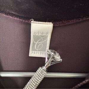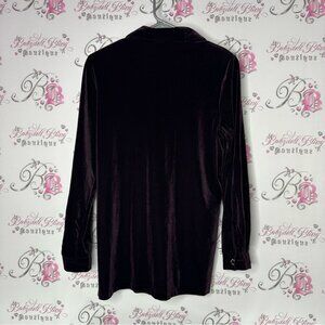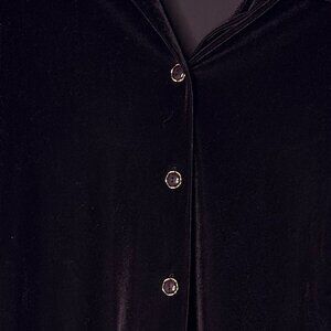 Cleo petites button up long sleeve Elegant Black Velvet velour Women's Top