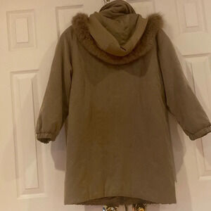 Cleo petites tan faux fur trim soft suede puffer jacket Sz PM