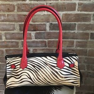 Funky animal print handbag. Embossed leather and pony hide. Made in Italy.