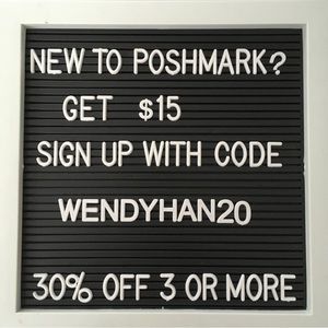 New to Poshmark? Sign up with my code WENDYHAN20 to save $15 on your first order!