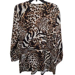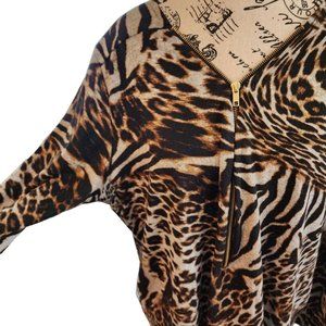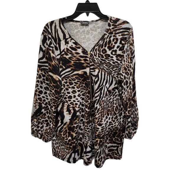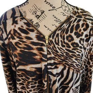 Clientele Blouse Women's Size OS Animal Print Tiger 3/4 Sleeve Zip