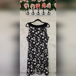 Step into retro-inspired elegance with this chic black mini dress adorned with tan floral details. The textured floral accents add dimension and charm, giving the dress a unique, nostalgic appeal. Its stretchy fabric ensures a flattering fit, making it a perfect choice for day or evening outings.