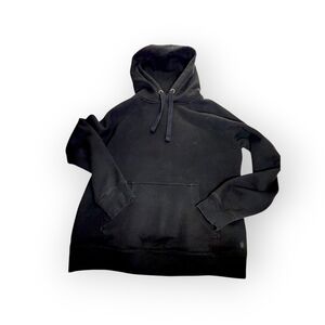 Climescape black hoodie featuring a convenient front pocket. Ideal for casual wear.