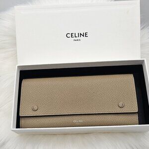 Céline Beige Large Flap Wallet in Grained Calfskin