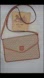 This light browm macadam crossbody bag features a leather body, a front flap with magnetic snap closure, an a flat leather strap.
