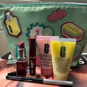 Versatile collection that caters to both skincare and makeup needs. This comprehensive set includes essential Clinique products in travel-friendly sizes, allowing you to maintain your skincare routine on the go. From facial cleansers to makeup essentials, each item is carefully curated to provide effective and nourishing care for your skin. Packaged in a stylish cosmetic bag, this set also makes for a perfect gift for any beauty enthusiast. Whether you're traveling or simply looking to try out new products, the Clinique 6-Piece Set has you covered.