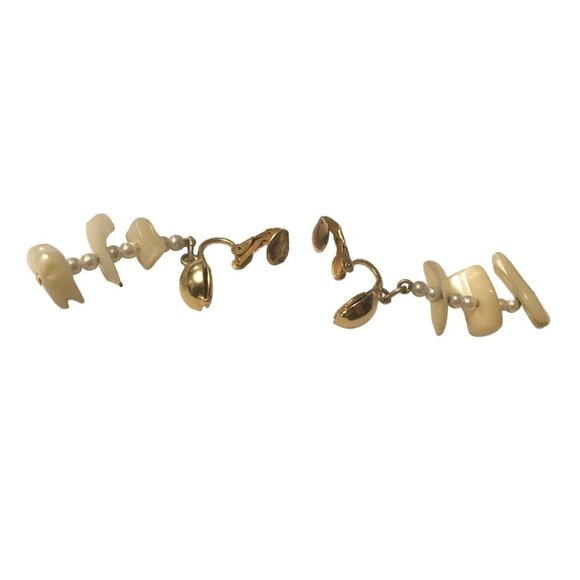 Clip On Dangle Earrings Vintage Mother Of Pearl & Faux Pearl 1.5" Elegant