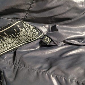 Closed down puffer jacket in gray, doesn't come with hood. Zip up front and pockets.
