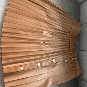 The faux leather pleated skirt is size medium from Zara.