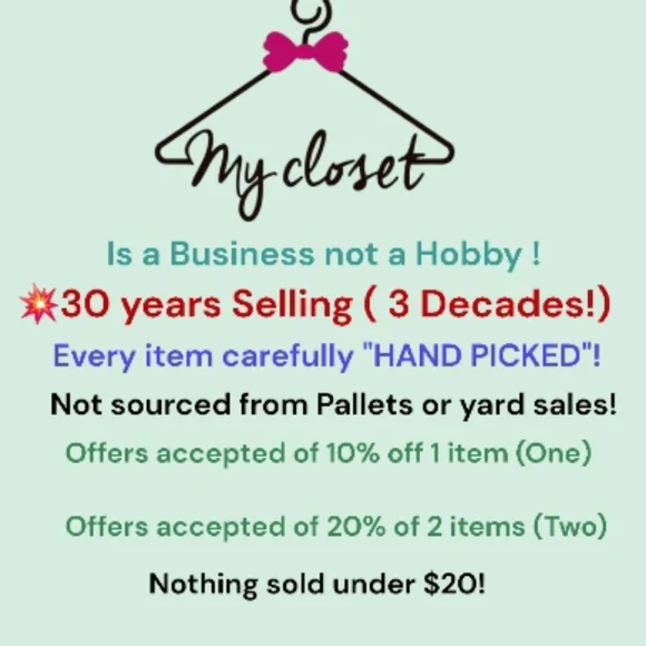Just to let YOU know, my closet is HALF OFF THE LISTED PRICE ON ALL CLOTHING ONLY with no additional discounts given on clothing!