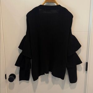 Chic black sweater with ruffled sleeves. Perfect for layering.