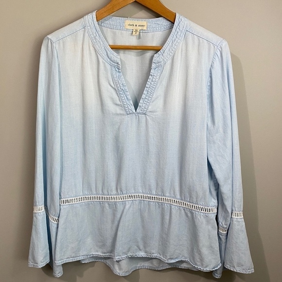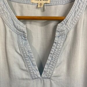 Cloth & Stone - Anthropologie - Chambray V-neck Women's Shirt Blue Size Medium