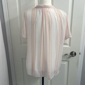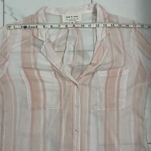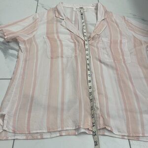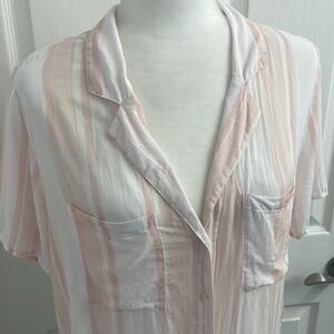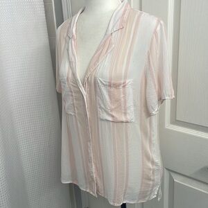 Cloth & Stone Anthropologie Short Sleeve Button Up Collar Pink/White Stripe SzLg