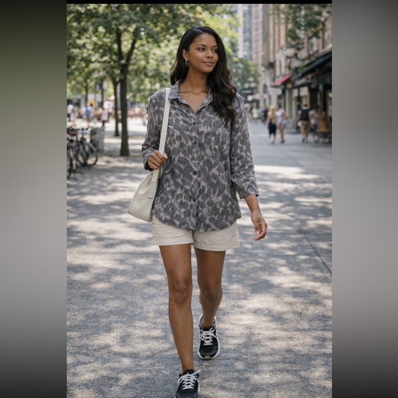 Cloth & Stone Button Down Shirt size M. Can fit size L as well. PTP - 19”, stretched to 20”. In great condition. Stylish gray patterned women's top, perfect for any occasion. Comfortable and chic, this top adds a touch of elegance to your wardrobe.