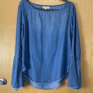 Cloth & Stone Chambray Blue Boho Bell Sleeve Top