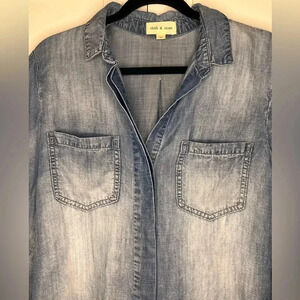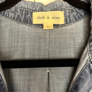 Cloth & Stone Chambray Faded Distressed High Low Top-Blue-Split Back Hem-Size M