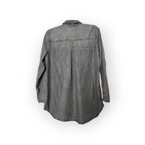 Anthropologie Cloth & Stone Gray Chambray Tunic Top Women’s Size L Long Sleeve V-Neck Pullover