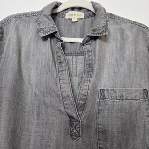 Cloth & Stone Gray Chambray Tunic Top Women’s Size L Long Sleeve V-Neck Pullover