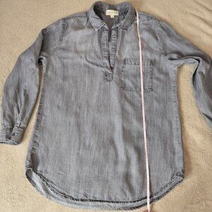 Cloth & Stone Gray Chambray Tunic Top Women’s Size L Long Sleeve V-Neck Pullover