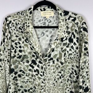 Cloth & Stone Leopard Print Lyocell Long Sleeve Button Down Shirt Large Grey